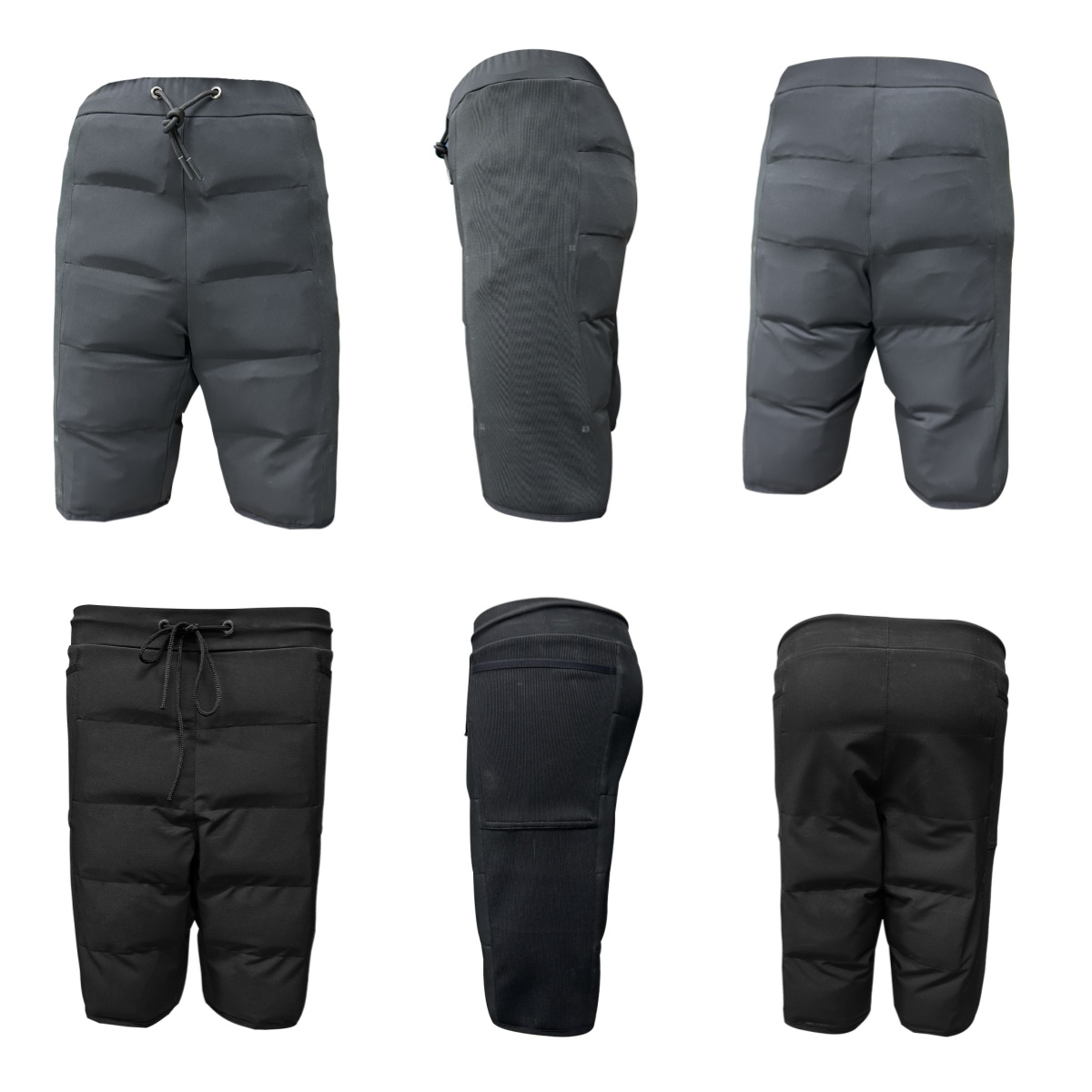 Unser Designkonzept sah in jedem Teil der Shorts eingebettete Eisbeutel vor. Das Ziel war klar: die Muskeln zu beruhigen, eine schnelle Genesung zu fördern und den Sportler zu schützen. Leider entsprach das erste Muster nicht unseren Erwartungen. Wir verwendeten 3 mm Neopren, um die Eisbeutel an Ort und Stelle zu halten, übersahen dabei jedoch die Tatsache, dass Neopren dick und nicht atmungsaktiv ist. Dies machte das Muster weniger wirksam als erwartet.